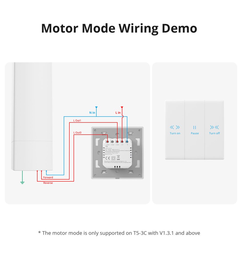 يعتبر SONOFF TX Ultimate T5-3C مفتاح ستائر ذكي يتيح لك تحديث الستائر الكهربائية التقليدية بسهولة. يتوافق المفتاح مع محركات التيار المتردد (AC) ذات الأسلاك الأربعة (أرضي، محايد، اتجاه أمامي، اتجاه عكسي)، مما يجعله خياراً مثالياً