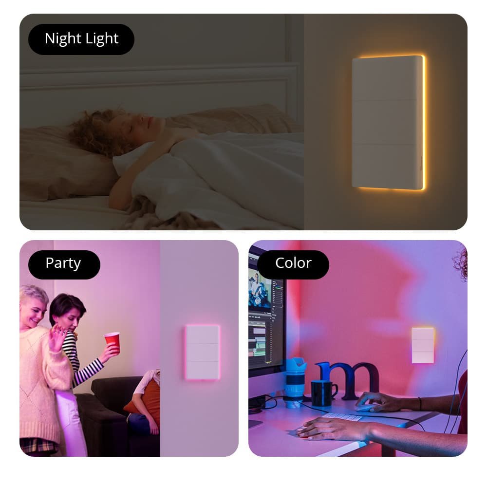 إضاءة محيطية متعددة الأوضاع: يحتوي المفتاح على 8 أوضاع إضاءة مختلفة. يمكنك استخدامه كإضاءة ليلية للممرات، أو إضاءة ملونة لخلق أجواء خاصة، أو حتى كإضاءة حائط لتزيين الغرفة.